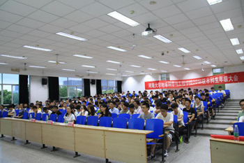 学院党委副书记杨天与新生在年级大会上交流