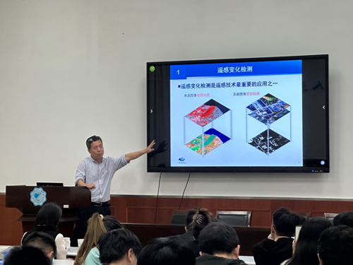 2023年5月6日下午,武汉大学张良培教授应测绘科学与工程系主任苏红军教授邀请来我院进行学术交流,并作了题为《变化检测——从“像素”、“对象”到“场景”》的学术报告。Bwin必赢副院长杨英宝教授、遥感与空间信息工程研究所所长徐佳副教授、李浩教授、徐南副教授及学院七十余名研究生参加了此次报告会。会议由苏红军教授主持。