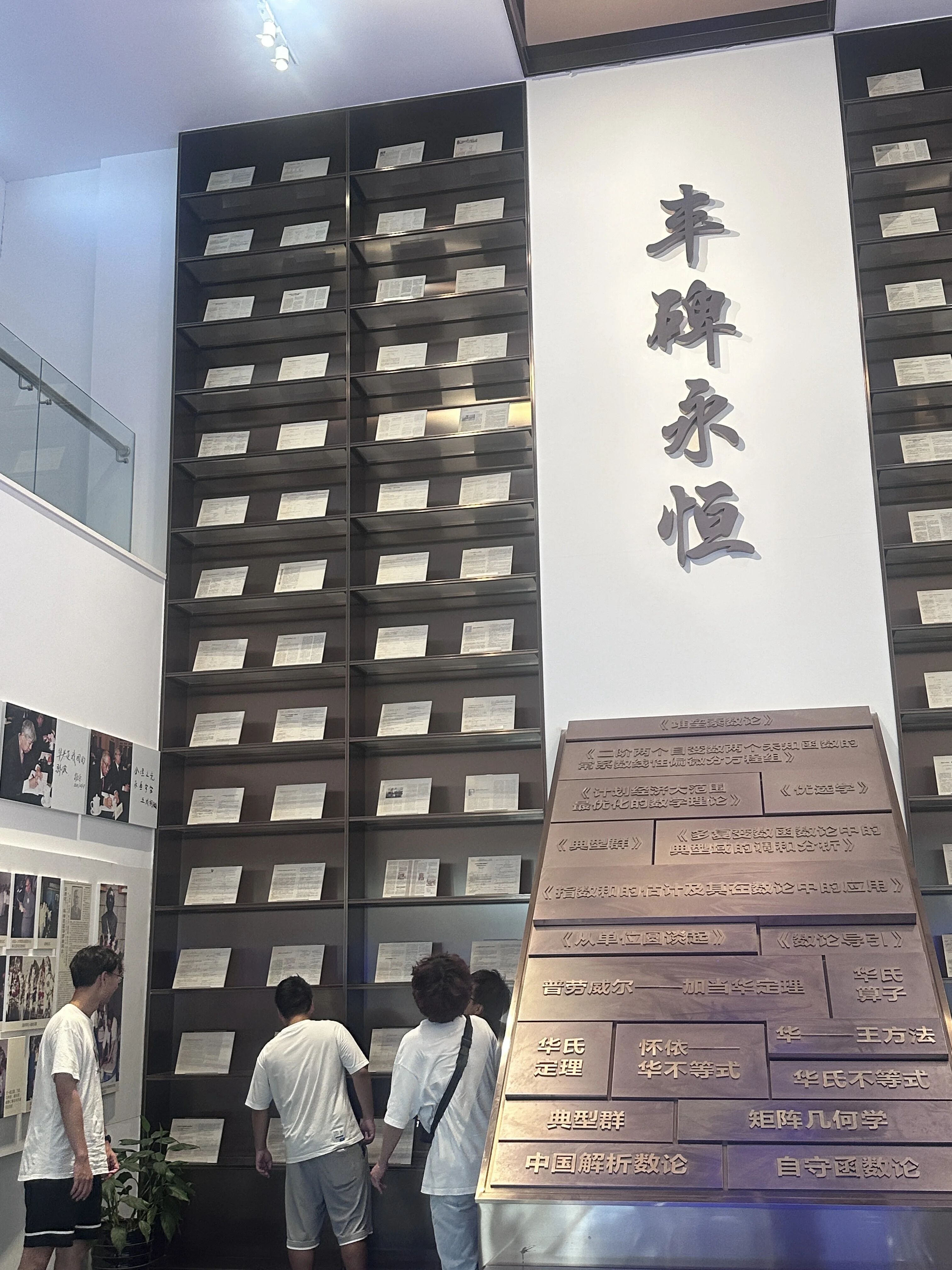 在华罗庚纪念馆,实践团首先参观“艰苦自学,勇攀高峰”展区,从昏暗油灯下的演算场景、战火中执着探索的画面及泛黄手稿中,感受华罗庚先生从杂货铺学徒到数学巨擘的蜕变,深刻体会“天才在于积累”的真谛,内心深受震撼。然后,实践团移步“胸怀祖国,情系人民”展区,了解到先生放弃国外优渥条件毅然归国的壮举,聆听“双法”(统筹法与优选法)从数学殿堂走向工厂田野、助力国家建设的故事,被“数学是中国人擅长的学科”中蕴含的民族自信与赤子深情深深触动,实践团成员们感慨:“先生用行动让我明白,数学不只是思维游戏,更是服务社会的利器。”最后,在“华罗庚书屋”实践角,实践团成员们结合专业开展“与大师对话”,研读著作选段后围绕“基础学科与国家需求结合”热烈讨论,随后在特制日记本上写下“数学报国志”与学习目标,以此锚定自身方向,传承华老精神。