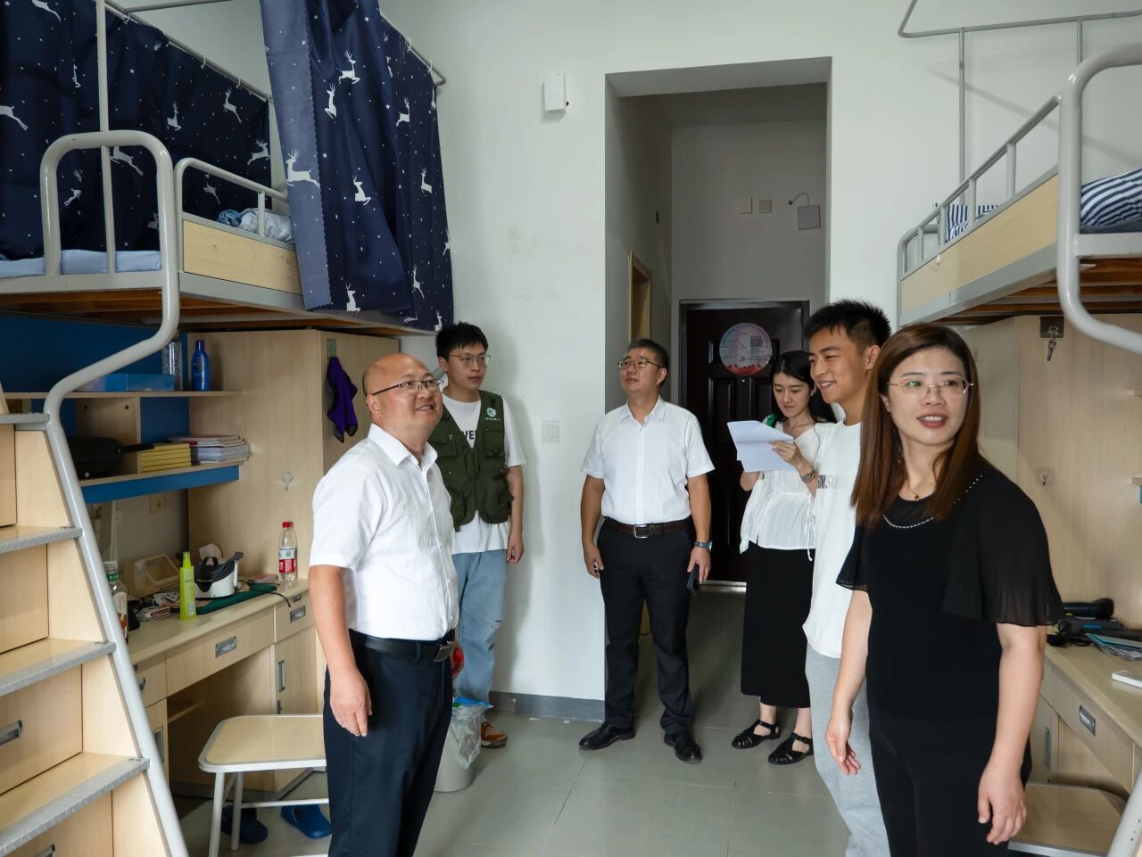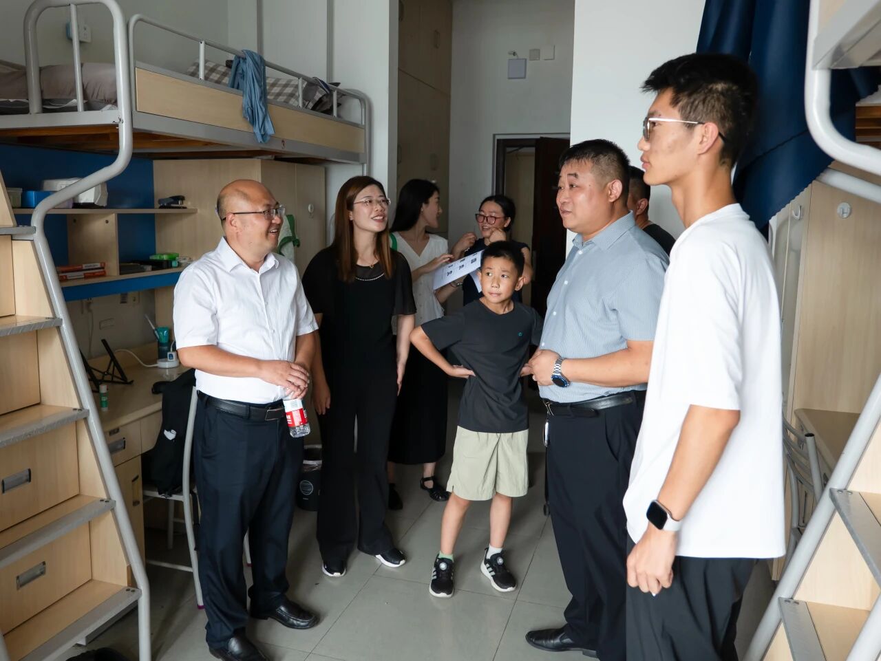 学院党委书记马孟珂、院长刘瑾、院党委副书记副院长张玲彬和新生辅导员闫蕴琦深入学生宿舍,与新生面对面交流,了解他们的入住适应情况,送上学院的问候与关怀。