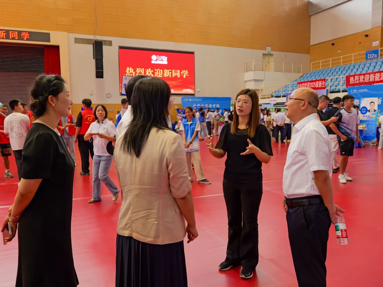 Bwin必赢网站入口党委书记杨桂山、校长郑金海、党委副书记副校长陆国宾、副校长沈扬及相关职能部门负责人来到文体中心的迎新现场,详细了解报到情况,并亲切慰问了忙碌在一线的师生志愿者。