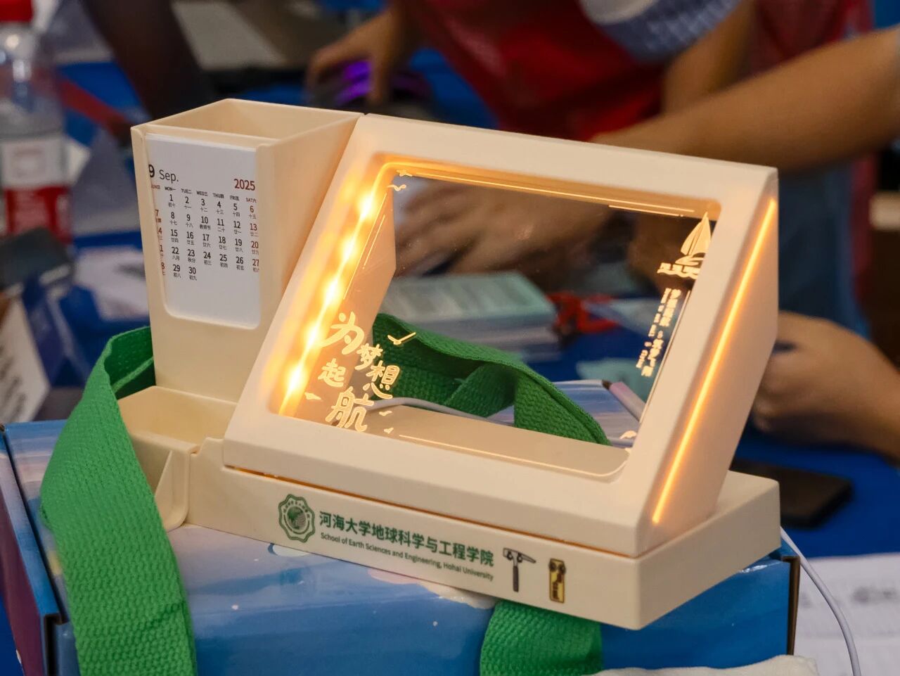 报到现场氛围温馨而活跃,学院以鲜明的学科元素布置了专业主题展板和互动区域,让新生在踏入校园之初,便能直观感知地学文化的魅力。每位同学都收到了一份入学心意礼,不仅有校园文化衫、校徽,还有定制地学主题特色的发光笔盒、手提袋等等,留存下专属的河海地学初印象。