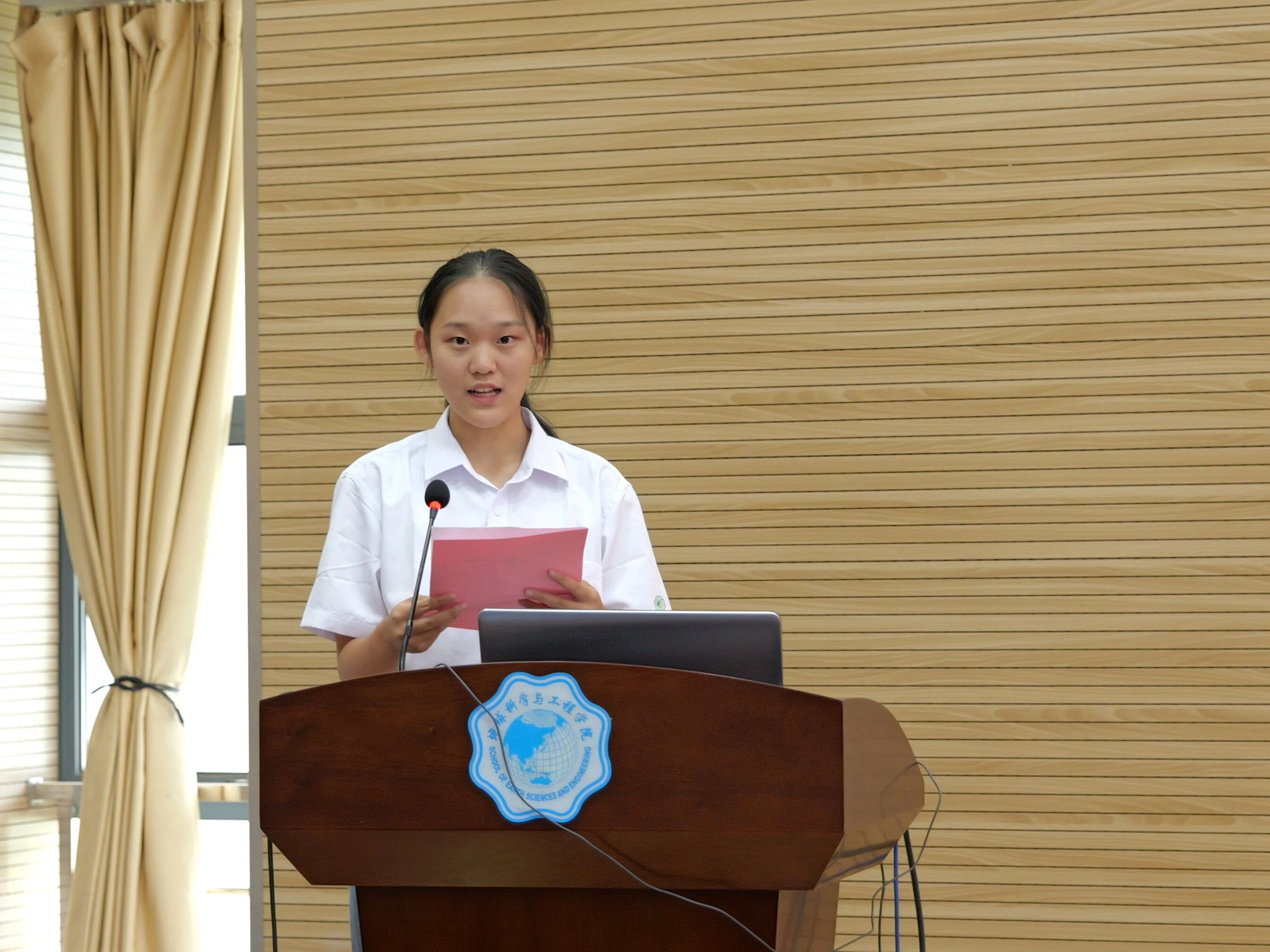 2025级地质工程专业蹇承颖同学作为新生代表发言。她畅谈初入校园的感受,激励同学们坚定信念、志存高远,做到尊师好学、持之以恒,善于实践、敢于创新,争做新时代优秀学生。