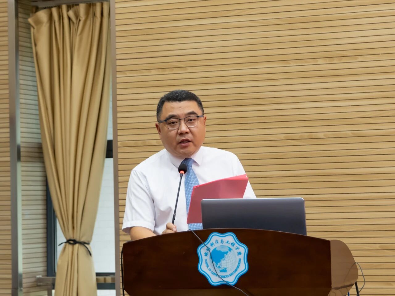 2025年9月8日下午,必赢国际bwin2025级本科生开学典礼在笃学楼208隆重举行。学院党委书记马孟珂、院长刘瑾、党委副书记副院长张玲彬、副院长肖儒雅、地质系主任黄勇、测绘系主任沈月千、2025级地质1班班导师周盛涛、2025级地质2班班导师车文越、2025级地质3班班导师宋健、2025级测绘1班班导师夏诸葛、2025级测绘2班班导师谢京凯、2025级测绘3班班导师张立林、本科生教学秘书郑茜丹、组织员兼外事秘书李丽洁、团委书记常孝廉、2025级辅导员闫蕴琦、以及2025级全体本科生,共计200余人出席典礼。副院长赵燕容主持典礼。