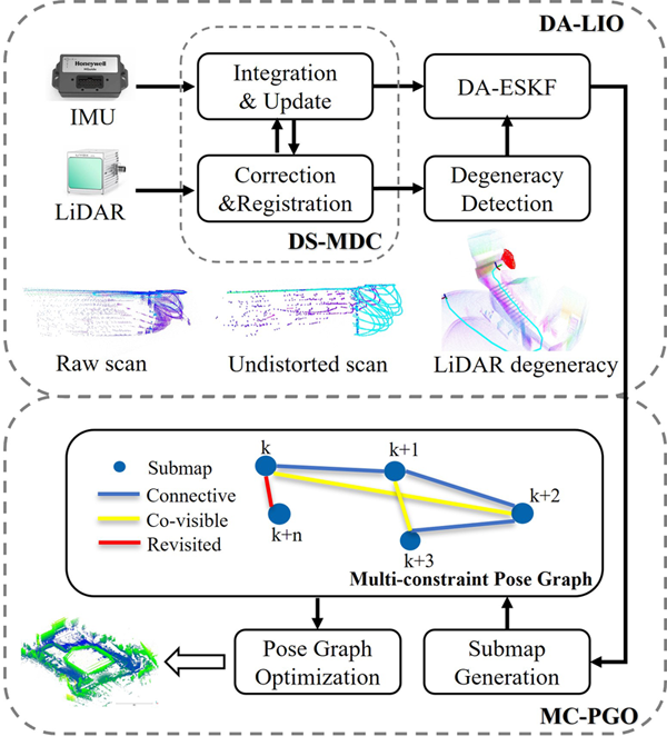 近期,必赢国际bwin何秀凤教授课题组及其合作者在测量与遥感领域顶刊《ISPRS Journal of Photogrammetry and Remote Sensing》上发表了题为“DALI-SLAM: Degeneracy-Aware LiDAR-inertial SLAM with novel distortion correction and accurate multi-constraint pose graph optimization”的研究论文。